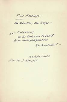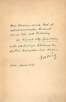 seiner eigenhändigen Widmung "Für Gustl ein Büchl